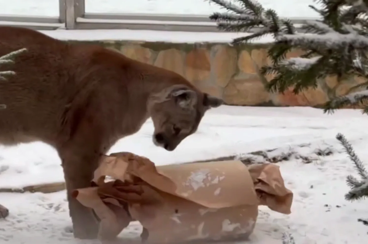 Пума Синди из Ленинградского зоопарка получила подарок — ей преподнесли лакомство, уложенное в цилиндр и завёрнутое в крафтовую бумагу. Мясо пришлось хищнику по душе, сообщает телеканал «Санкт-Петербург» со ссылкой на пресс-службу зоосада.
