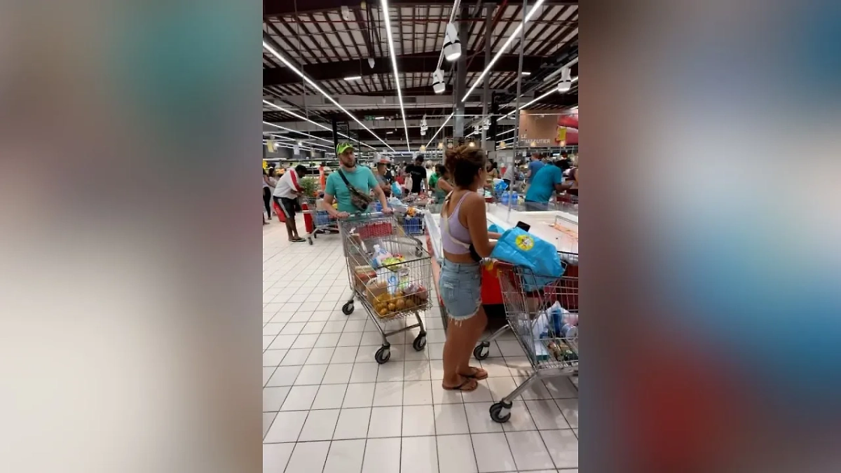 Огромные очереди в магазине на Маврикии в преддверии удара циклона. Видео © SHOT