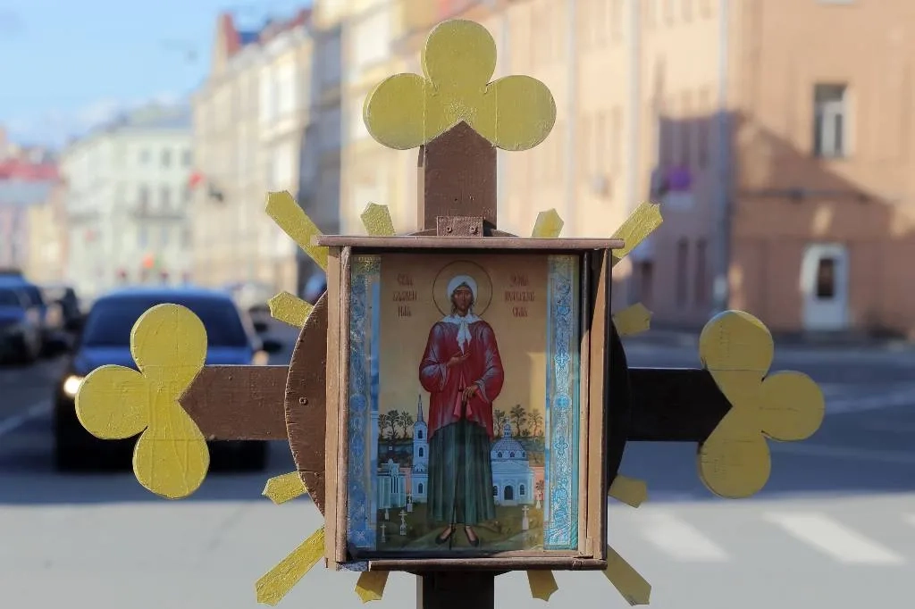 Поклонный крест с иконой блаженной Ксении Петербургской на набережной реки Фонтанка. Обложка © ТАСС / Замир Усманов