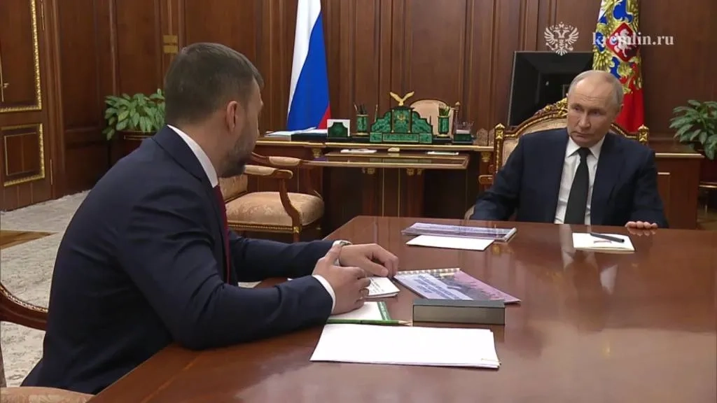 Владимир Путин принимает Дениса Пушилина в Кремле. Видео © Telegram / Кремль. Новости