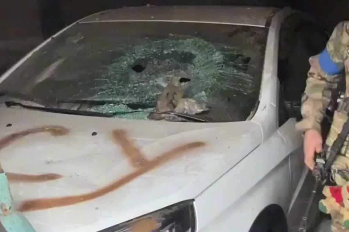 На кадрах виден гараж одного из местных жителей с разбитым автомобилем. ВСУшники утроили там погром: стреляли в лобовое стекло и фары авто, сняли колёса, а на капоте коричневой краской написали «ВСУ».