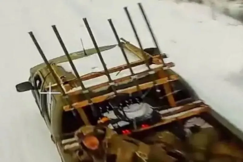 Дрон «Князь Вандал Новгородский» гонится за украинским пикапом. Видео © Telegram / SHOT