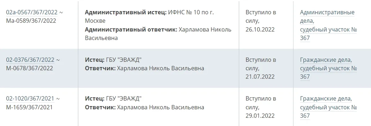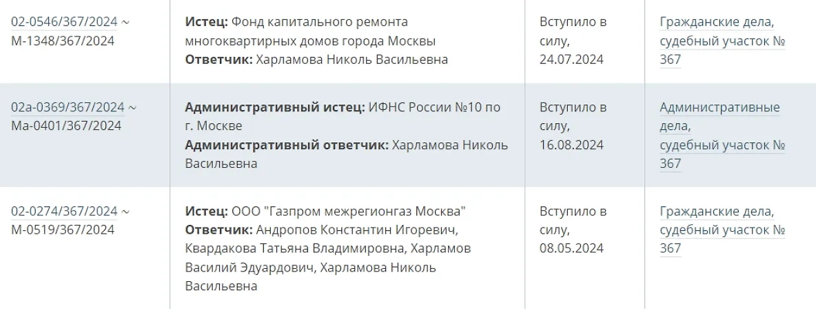 Согласно судебным базам, полная тёзка Николь вообще злостная неплательщица, на неё подавали в суд налоговая, фонд капремонта, управляющая и газовая компании. Некоторые из этих долгов просто ещё не внесены в базу должников.
