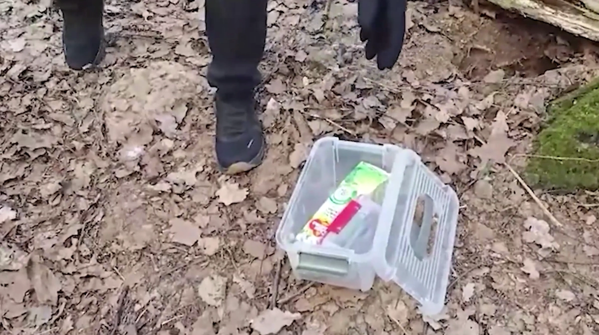 Обнаружение тайника с СВУ и паспортом гражданина Украины. Видео © ЦОС ФСБ РФ