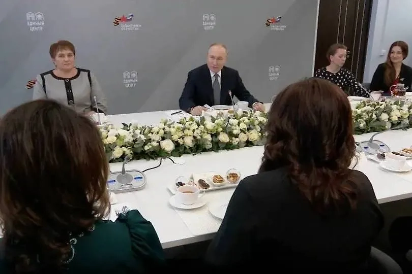 Ранее сегодня Путин в сопровождении мэра Москвы Сергея Собянина и председателя фонда «Защитники Отечества» Анны Цивилёвой прибыл в единый центр поддержки участников СВО. С главой государства приехала и вдова командира батальона Сергея Чебнёва с позывным Отмель, который погиб, самоотверженно защищая населённый пункт Малая Локня Курской области во время атаки ВСУ.