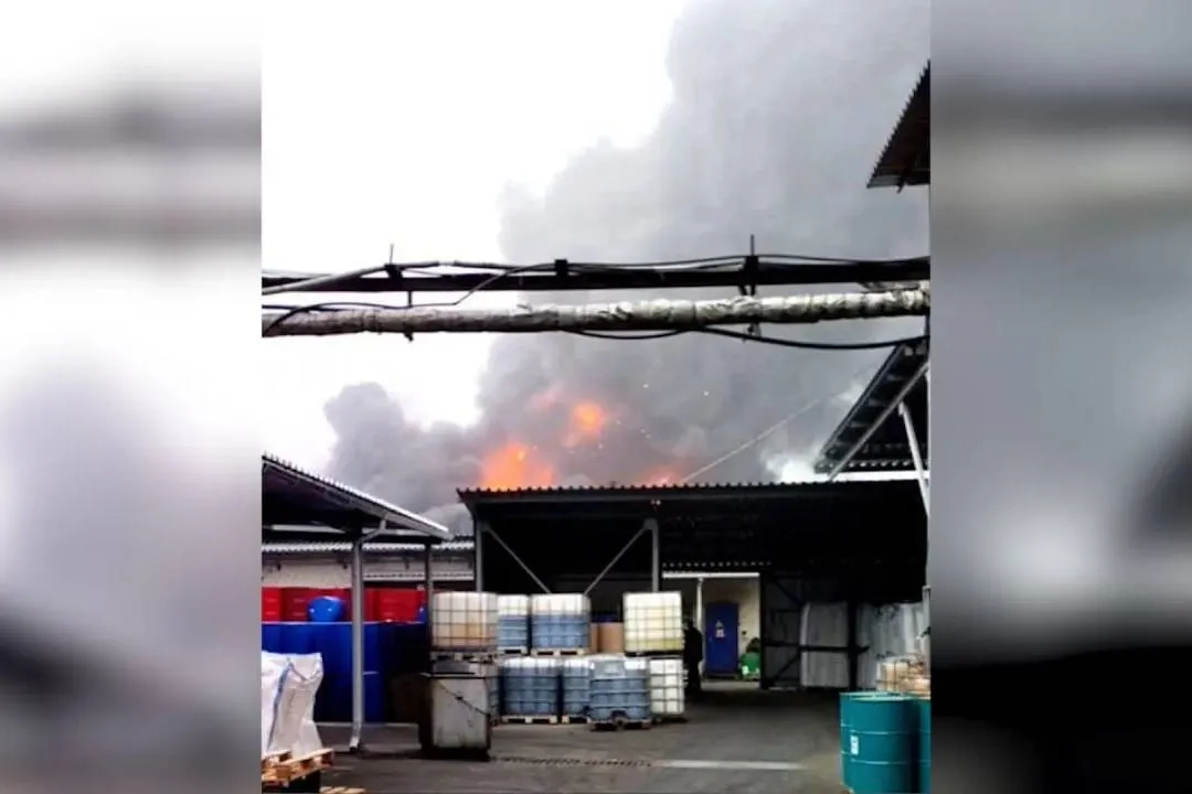 Пожар на заводе. Фото © Telegram / SHOT
