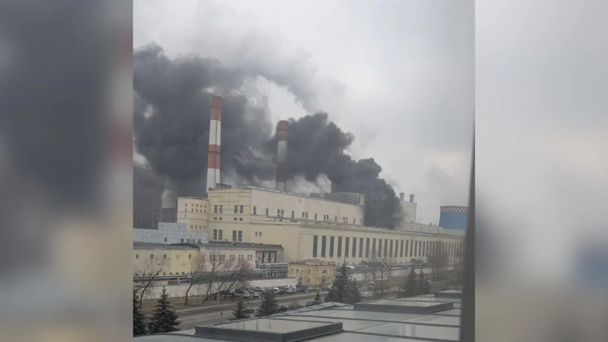 Чёрный дым до неба: Мощный пожар охватил крышу ТЭЦ-16 на западе Москве