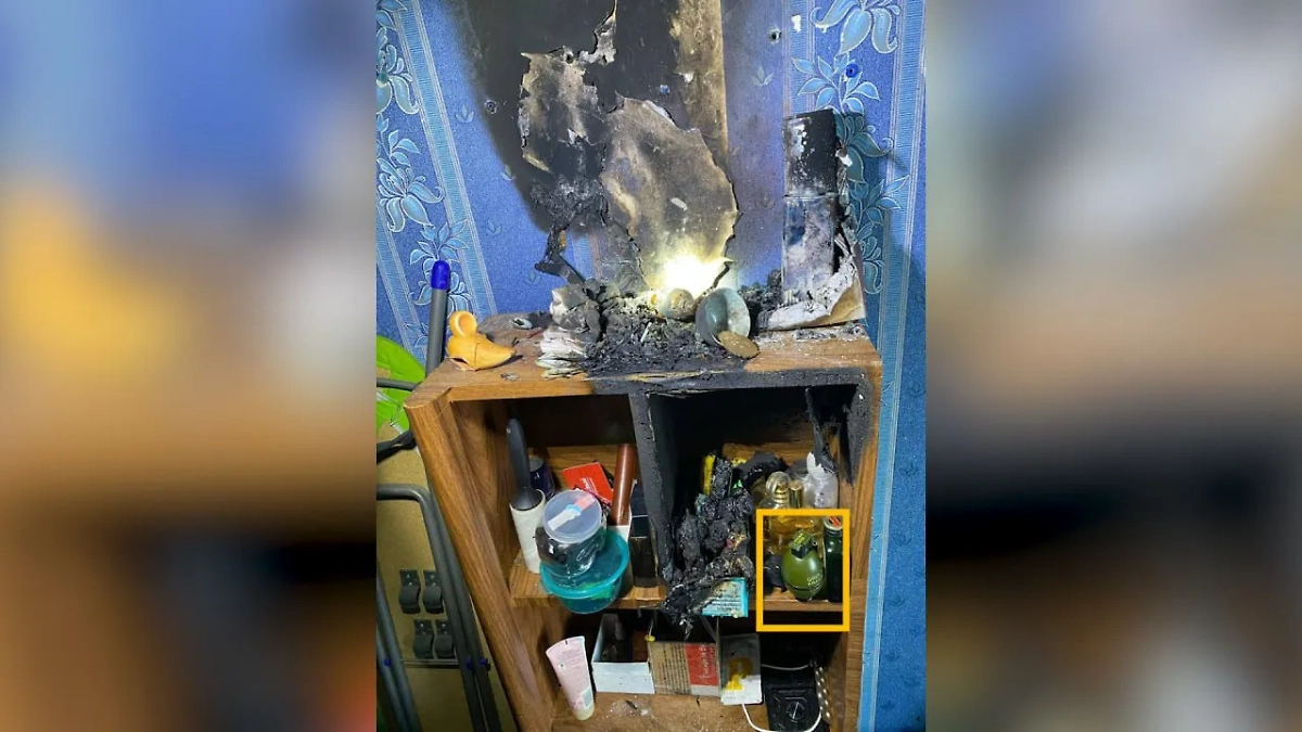 Последствия взрыва при заправке зажигалки в форме гранаты в Москве. Фото © SHOT