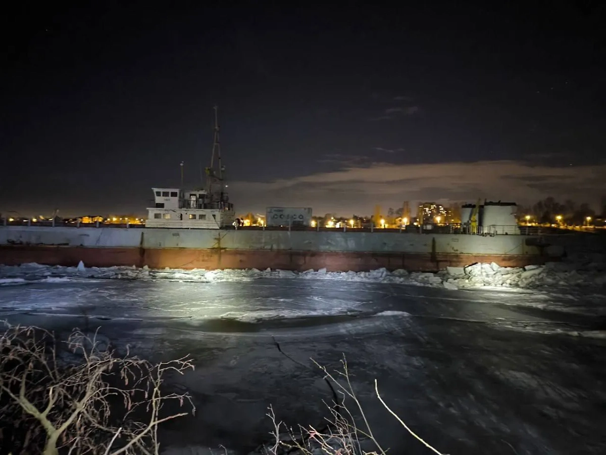 Корабль пришёл в движение из-за перемещения льда в посёлке им. Свердлова. По факту инцидента организована проверка.
