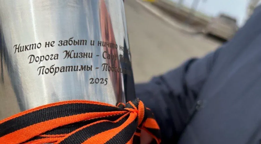 «Это исторический момент, когда «Дорога жизни» из Ленинградской области, из-под Санкт-Петербурга передаёт этот знак с находящейся в ней, этой гильзе, землёй из-под Ленинграда с легендарной Дороги жизни. Она передаётся на хранение в музейно-мемориальном комплексе ДНР», — отметил инициатор автопробега и руководитель международного патриотического проекта «Побратимы-Победители» Юрий Паламарчук.