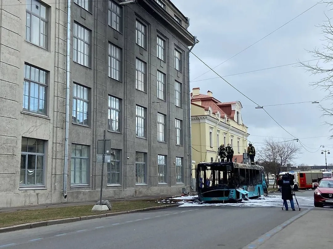 Сгоревший автобус на Васильевском острове в Петербурге. Обложка © VK / MR7.ru | Мой район | Новости Петербурга