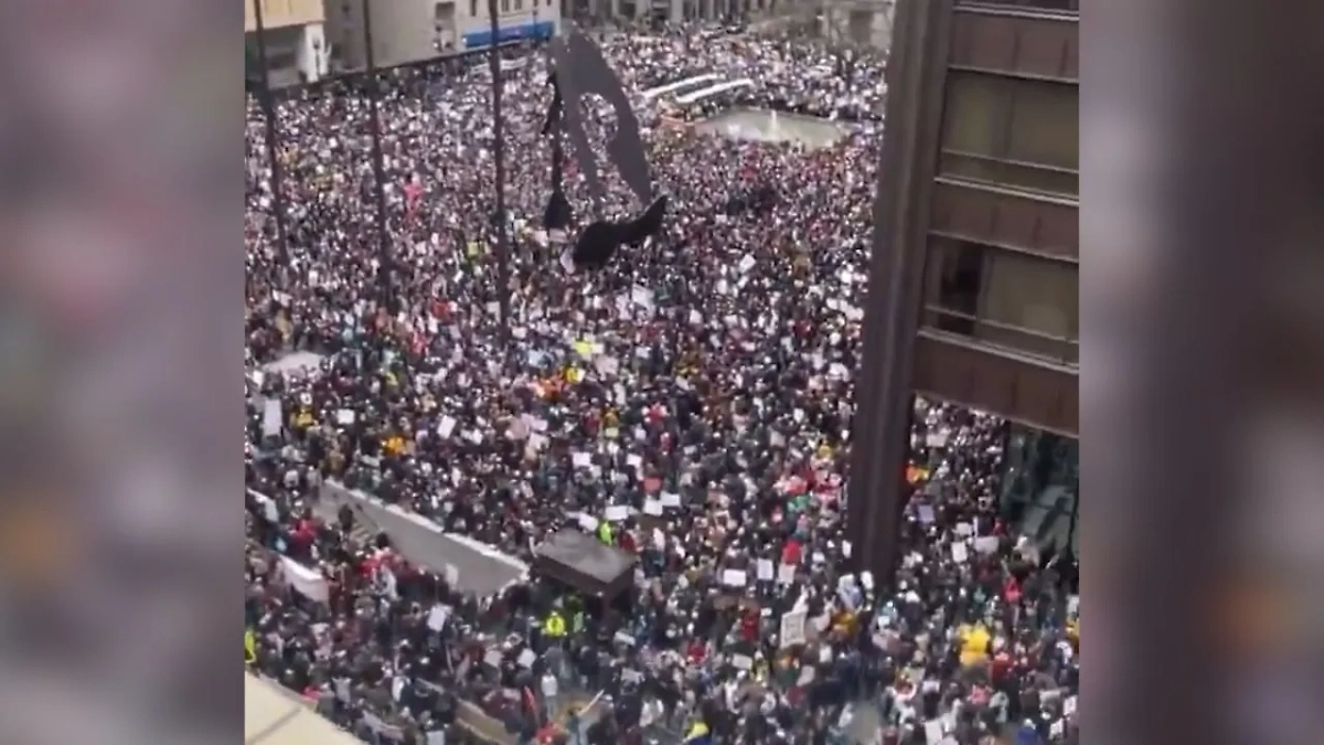 Протесты Hands Off! в Чикаго. Видео © X / MarcoFoster_