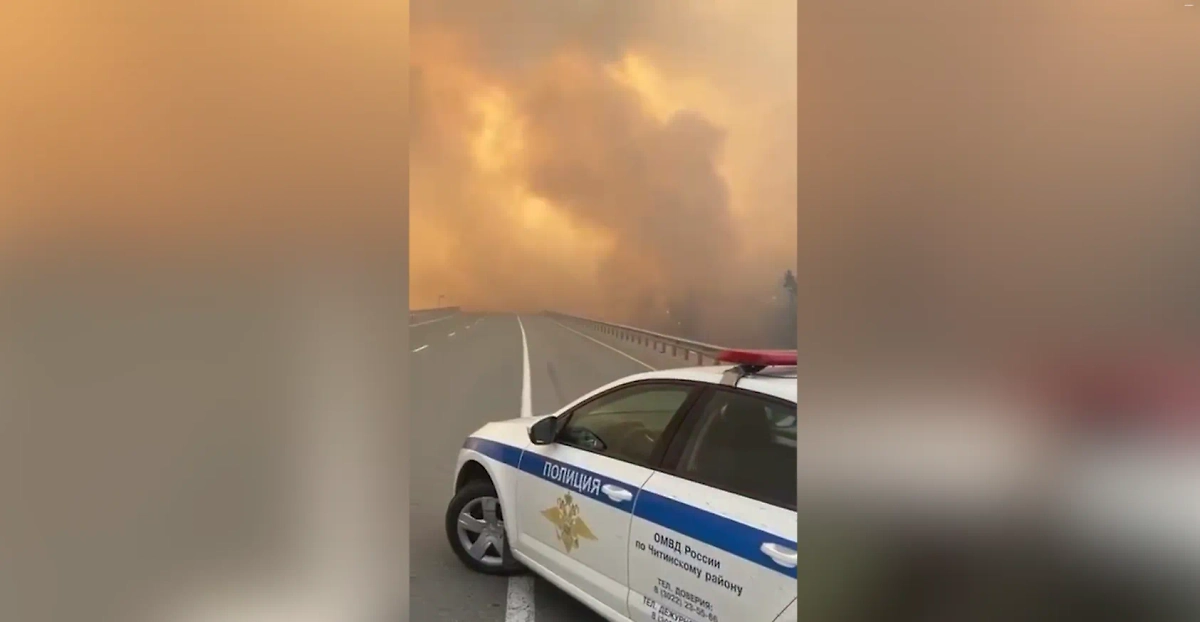 Федеральную дорогу «Байкал» перекрыли из-за лесных пожаров и сильного задымления. Видео © Telegram / Полиция Забайкалья