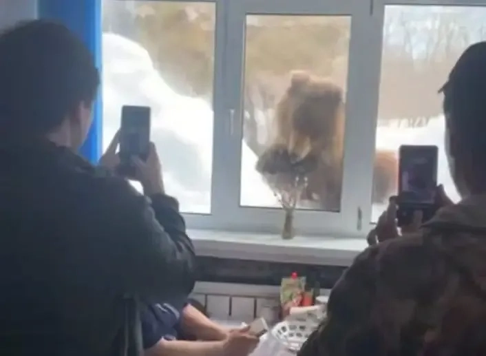 В Малках Камчатского края медведь вежливо поскрёбся в окно столовой ради еды
