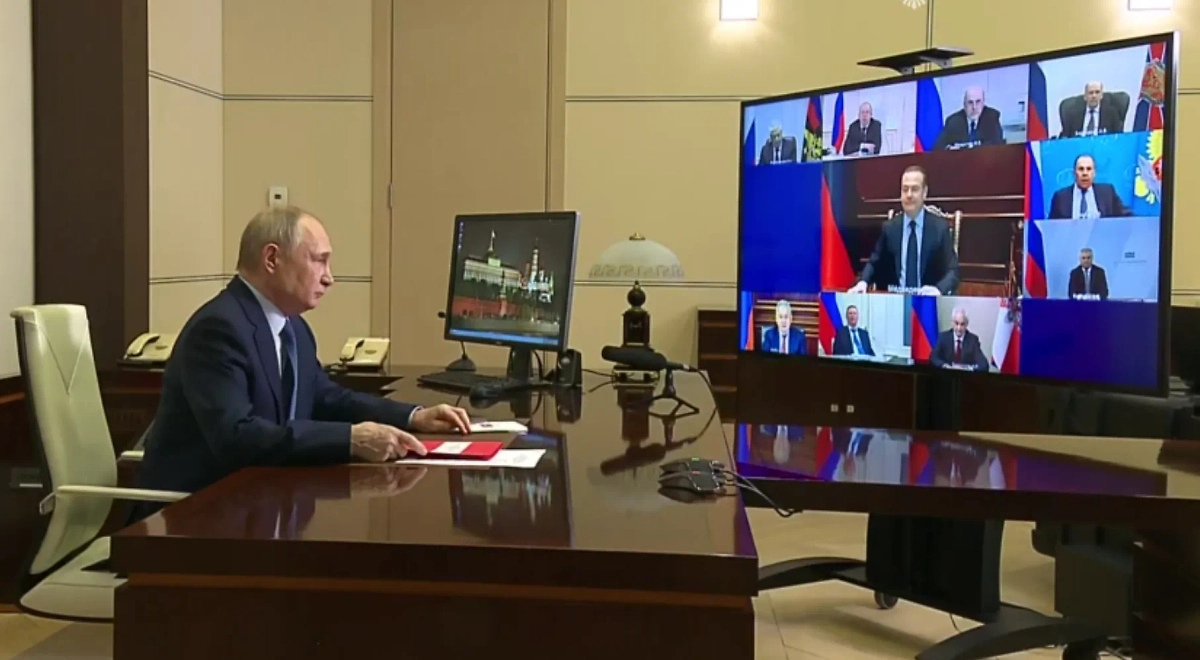 Путин на совещании с членами Совбеза. Видео © Telegram / Кремль. Новости