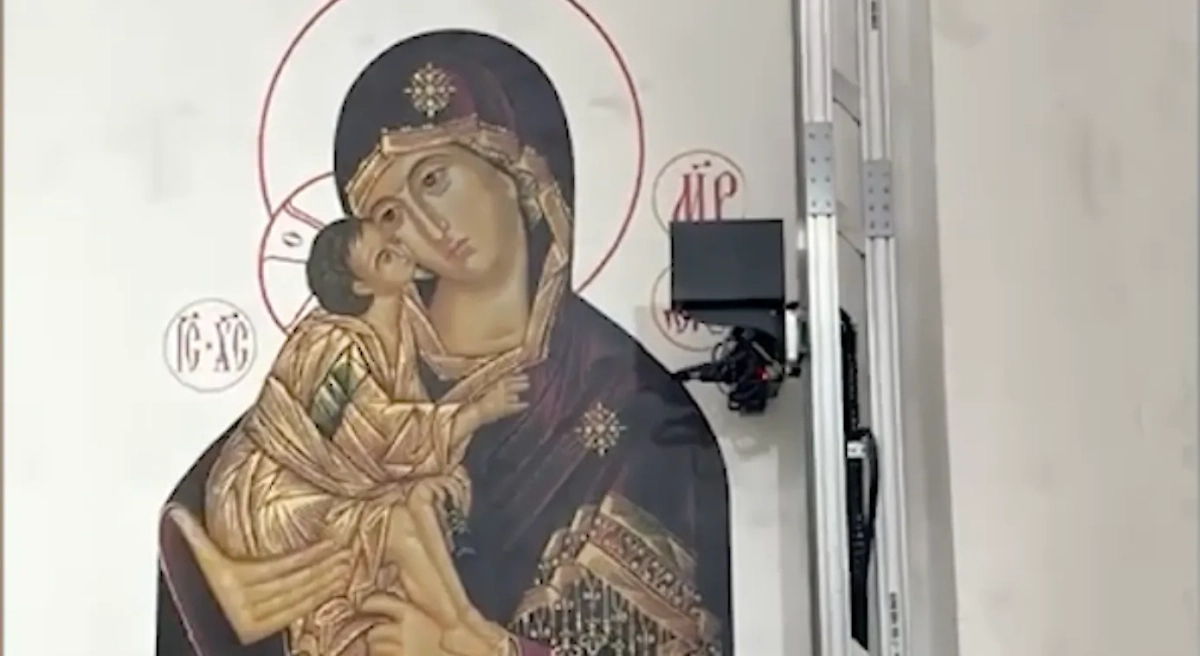 В Мытищах стены храма украшают напечатанные иконы. Видео © Telegram / Подъём