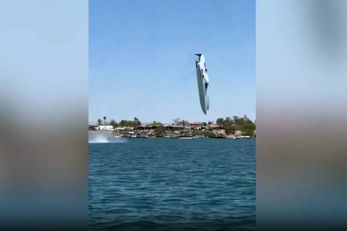 В США на гонках одна из лодок развила такую высокую скорость, что судно, как самолёт, оторвалось от поверхности воды и взмыло в воздух, сделав сальто. После этого она плюхнулась обратно в воду. На борту было два человека, с которыми, по предварительной информации, всё в порядке. Аварийные бригады подоспели к месту происшествия.