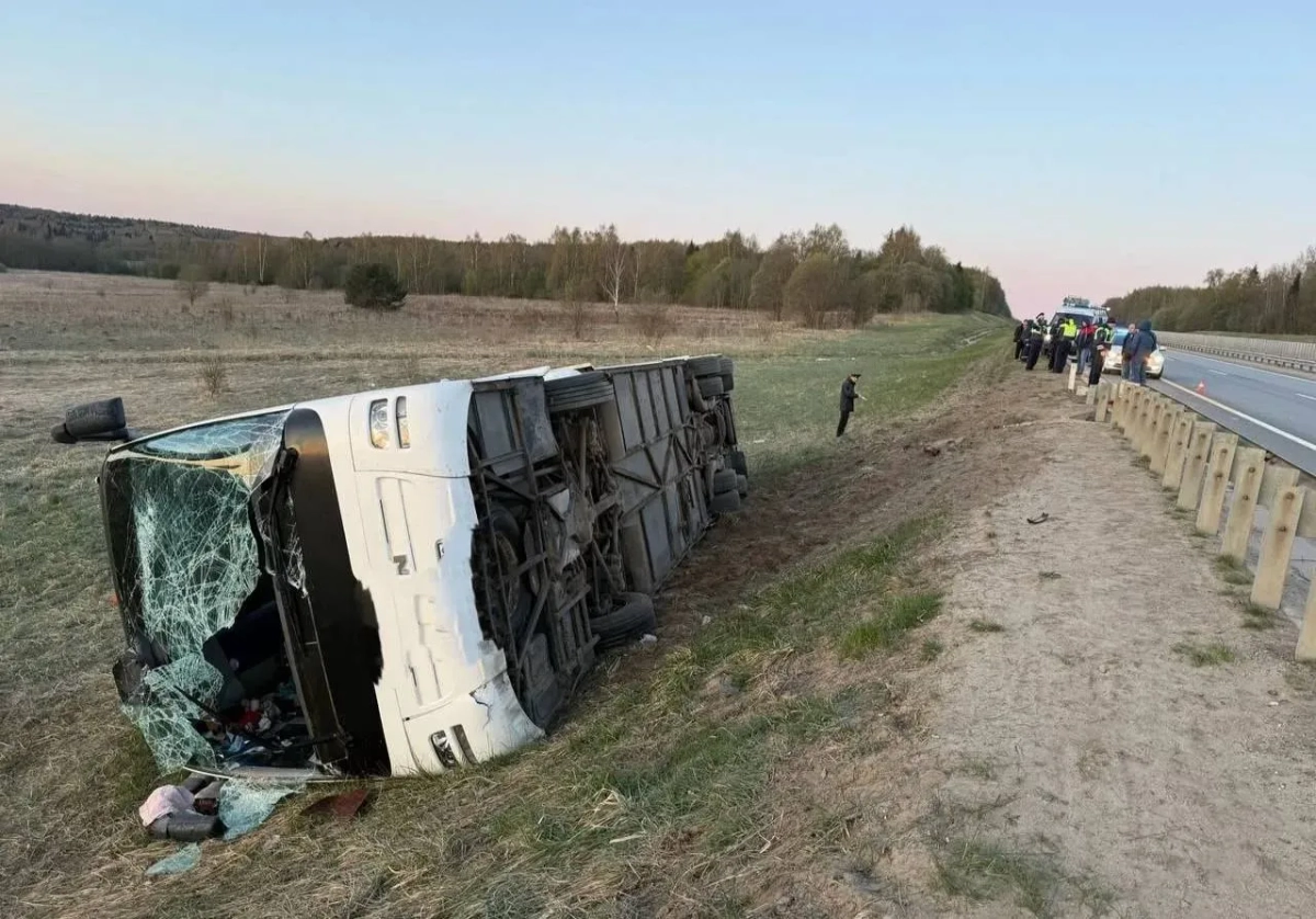 Дорожно-транспортное происшествие с участием автобуса произошло ранним утром 28 апреля в Александровском районе Владимирской области. Около 02:40 водитель транспортного средства с 55-ю пассажирами в салоне допустил съезд в кювет. В результате аварии машина опрокинулась на бок.