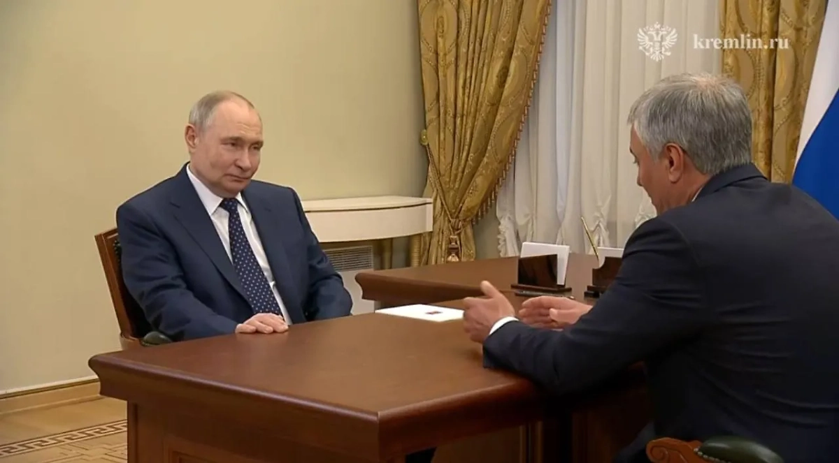 Встреча Владимира Путина с Вячеславом Володиным. Видео © Telegram / Кремль. Новости