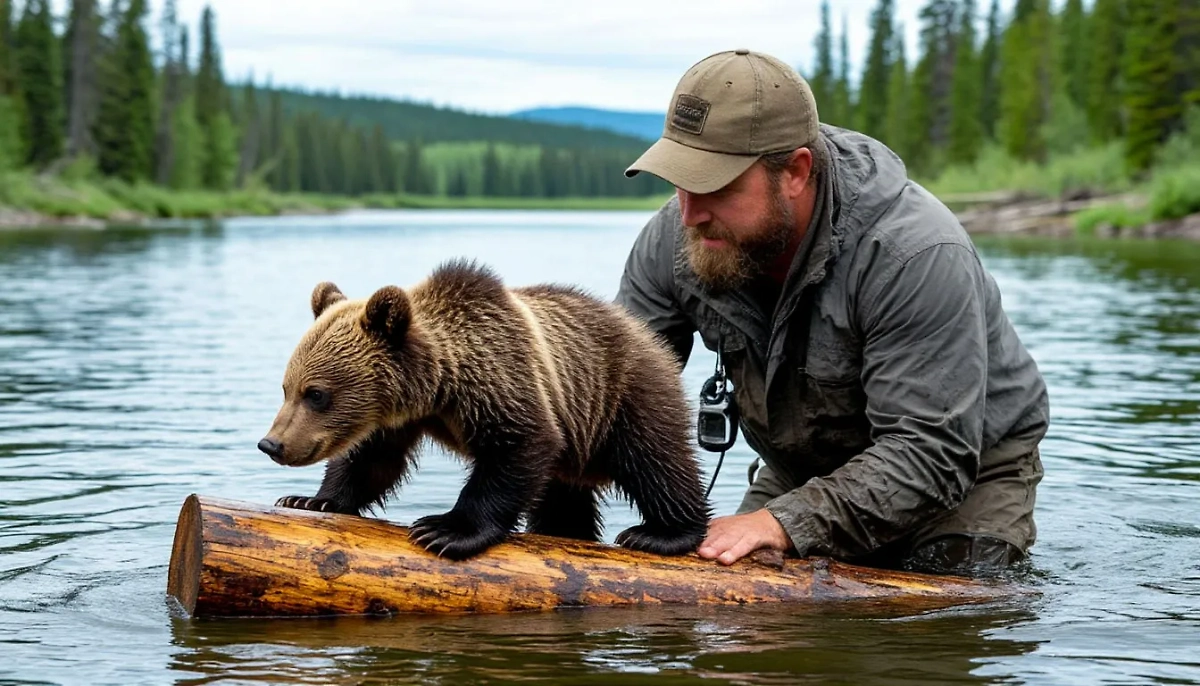 Житель Башкирии помог тонущему медвежонку. Видео © Telegram / Министерство природопользования и экологии Башкортостана