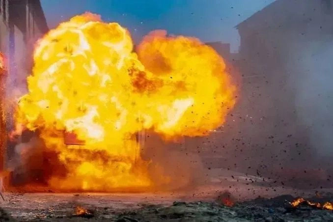 Взрыв на улице с огненными облаками. Обложка © Shutterstock / FOTODOM / Serhii Yushkov