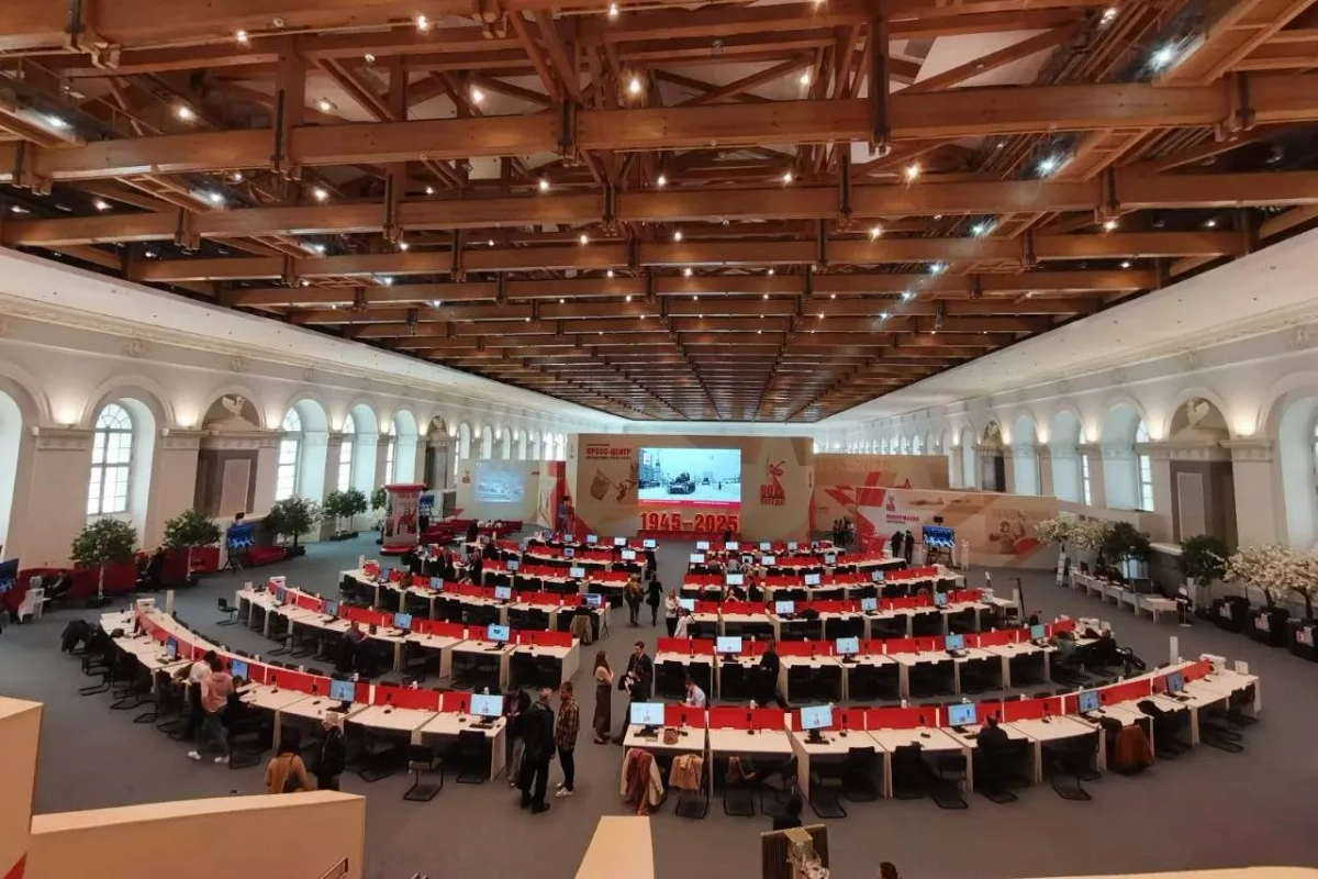 В Москву прибывают журналисты со всего мира, чтобы освещать торжества, посвященные Дню Победы. Для работы прессы в «Манеже» был создан современный и передовой пресс-центр. Зал рассчитан на 400 журналистов и готов к распространению новостей по всему миру.