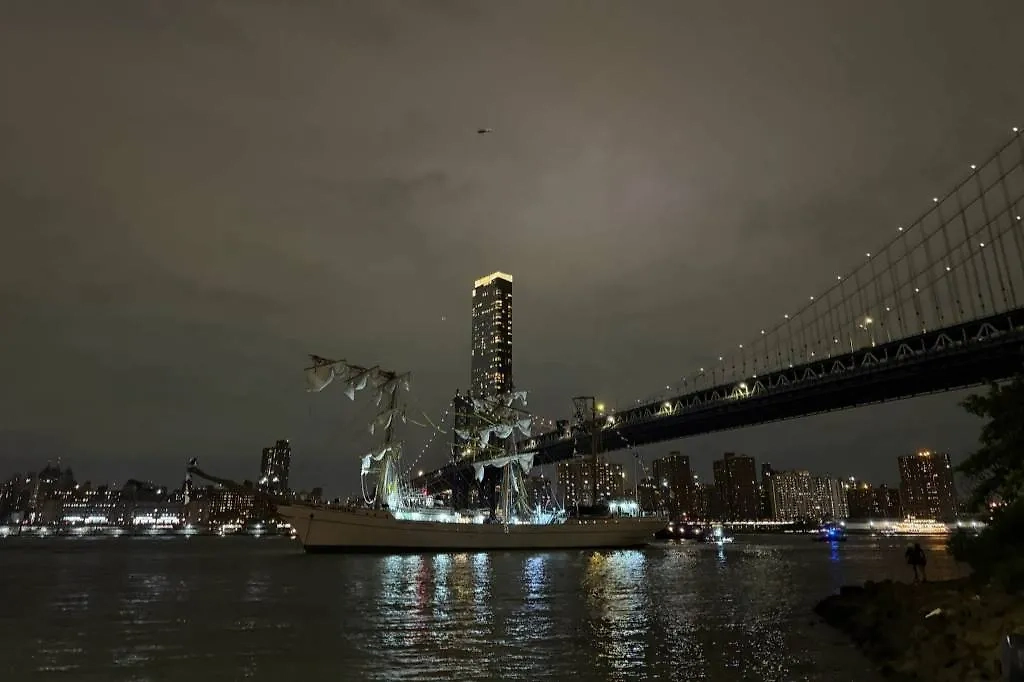 Судно у Бруклинского моста. Обложка © X / Ken4NYC