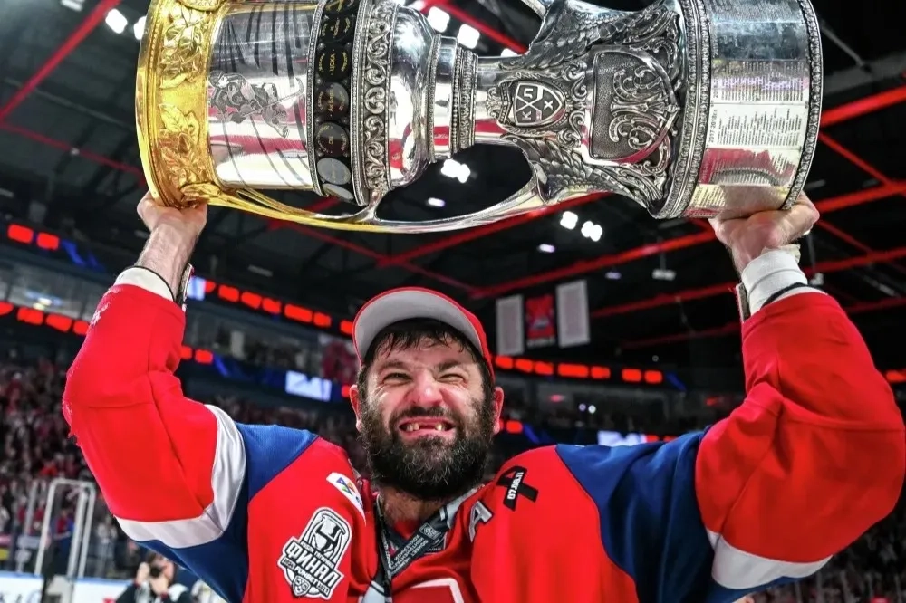 Александр Радулов («Локомотив») с Кубком Гагарина. Обложка © РИА «Новости» / Сергей Бобылев