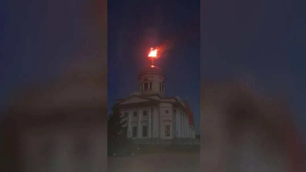 Крест остался нетронутым: Горящий после атаки ВСУ купол собора под Тулой попал на видео