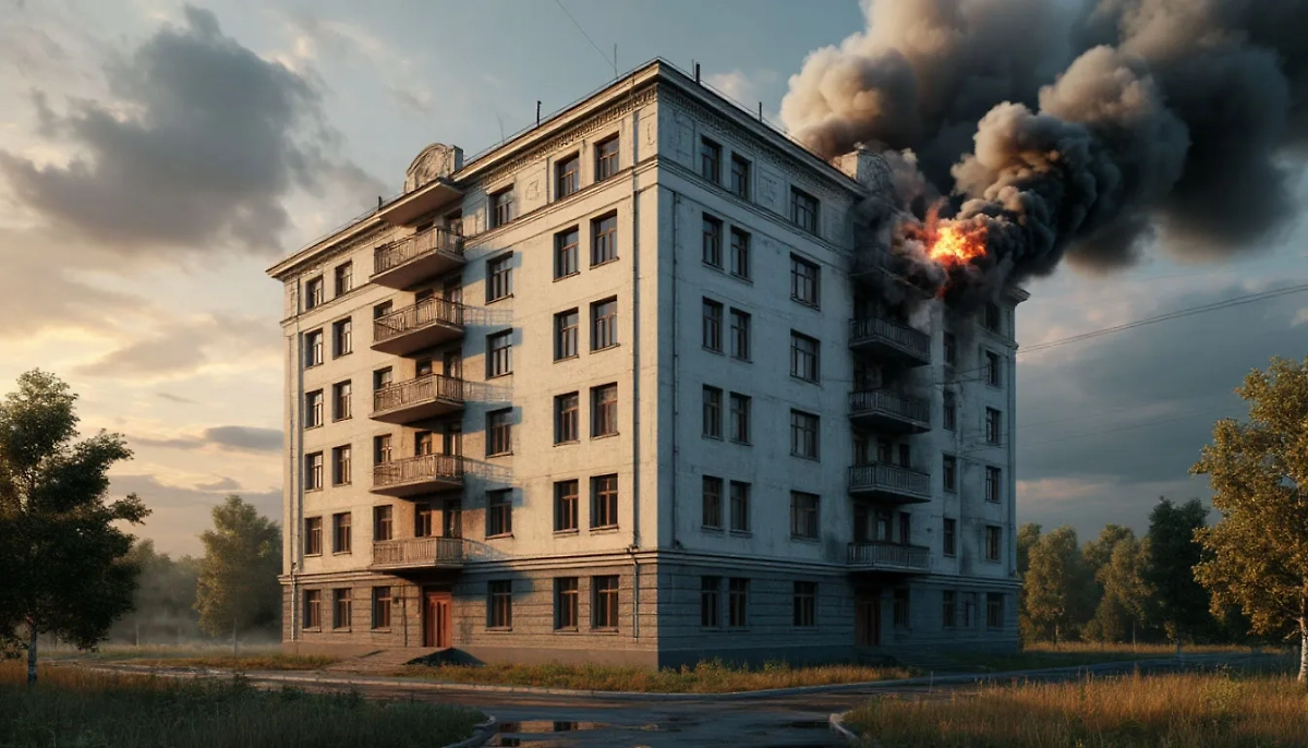 На опубликованных кадрах видно, как густой дым валит из окна верхнего этажа здания, на место происшествия оперативно прибыли пожарные машины. Причины возгорания остаются неизвестными.
