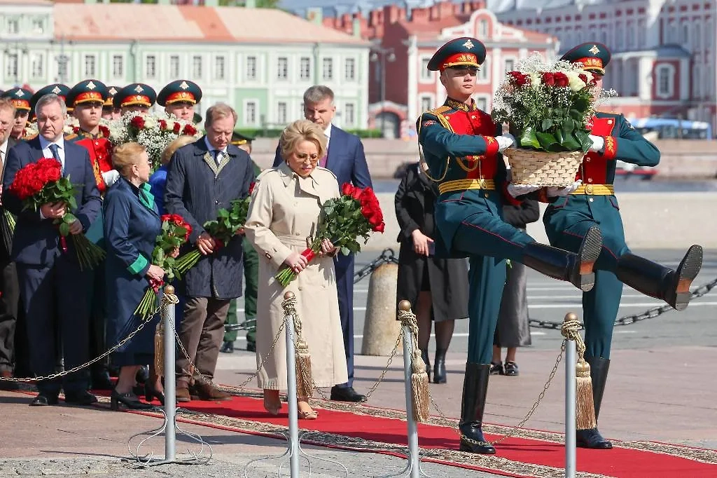Матвиенко возложила цветы к Медному всаднику в честь 322-летия Петербурга