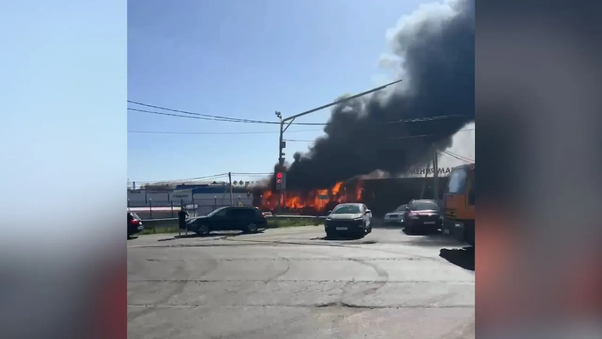 Огромный столб плотного чёрного дыма виден из разных районов города. На данный момент информация о пострадавших не поступала.