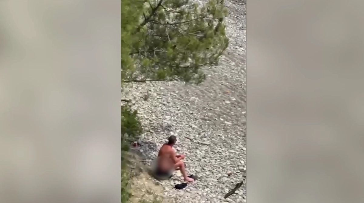 Голые мужики отдыхают на нудистском пляже рядом с детским лагерем в Сочи. Видео © Telegram / Сочи News
