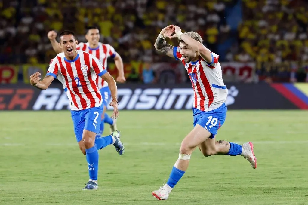 Футболисты сборной Парагвая в матче против команды Колумбии. Обложка © ТАСС / EPA