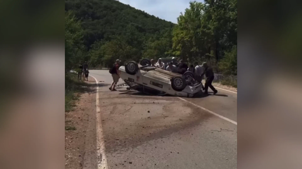Эпичная авария: Легковушка столкнулась со столбом и перевернулась на ралли в Крыму