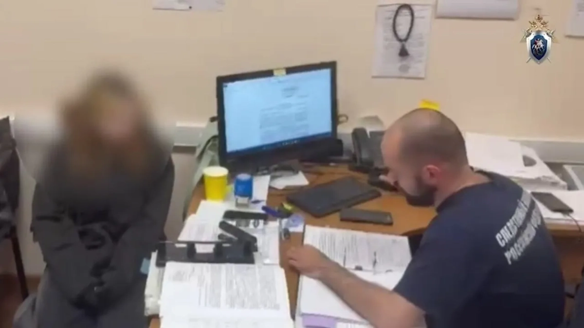 Допрос задержанной у следователей. Видео © Telegram / Следком Ленинградской области