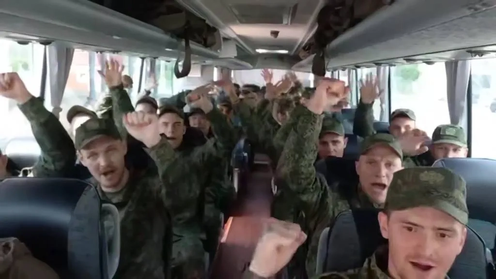Первая группа молодых российских военнопленных едет домой. Видео © Telegram / Минобороны РФ