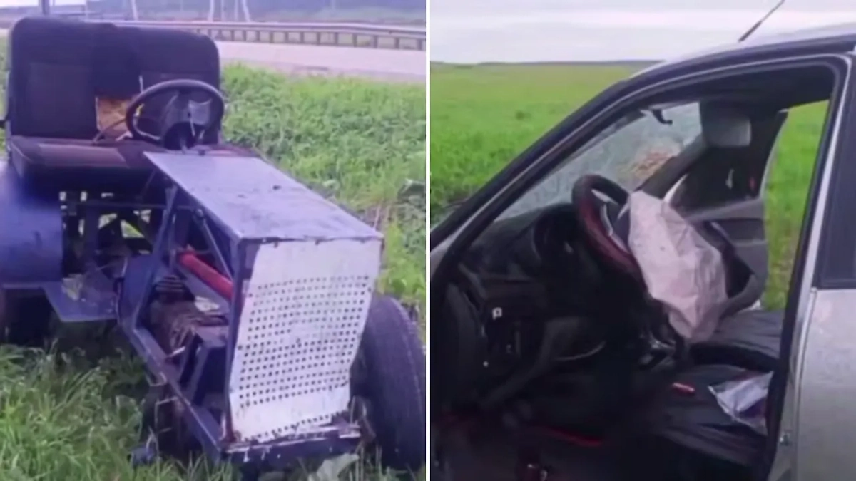 Легковушка влетела в самодельный трактор под Иркутском. Видео © Telegram / МВД38