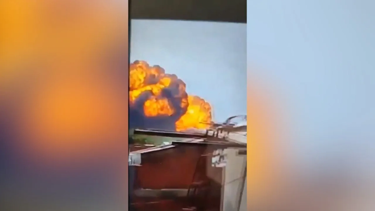 Камера фиксирует ужасающее зрелище: самолёт стремительно падает, направляясь прямо на жилой дом. Мощнейший взрыв, раздавшийся вслед за этим, сотрясает землю.