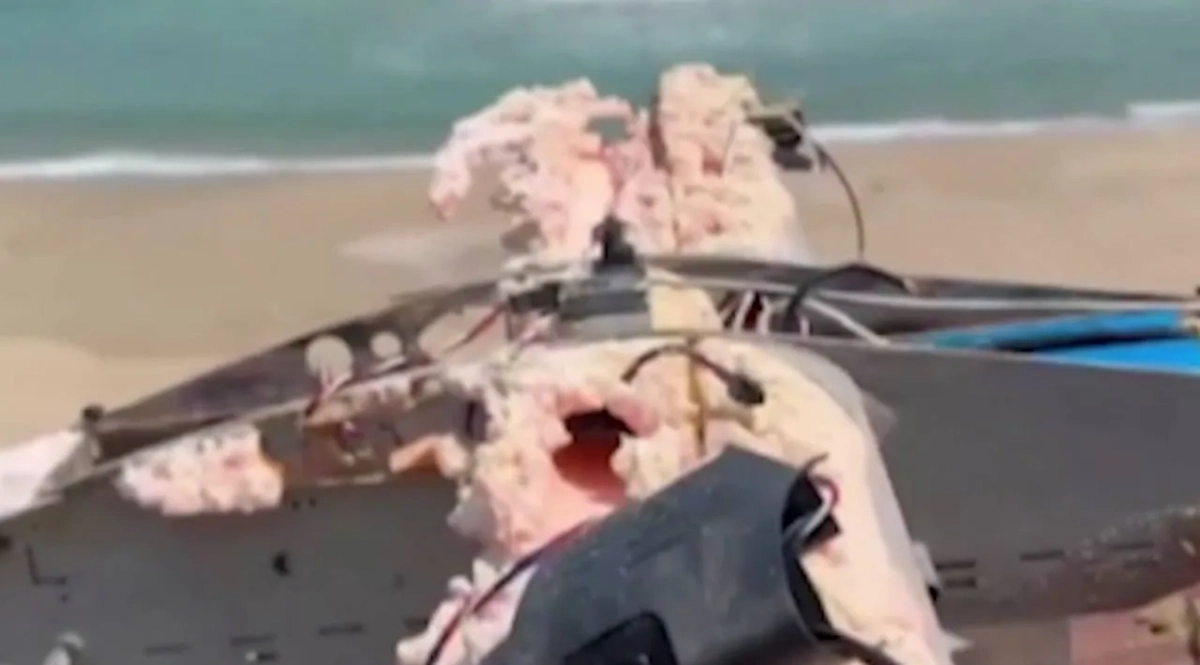 Кадры найденного беспилотника на пляже в Турции. Видео © Х / Daily Turkic
