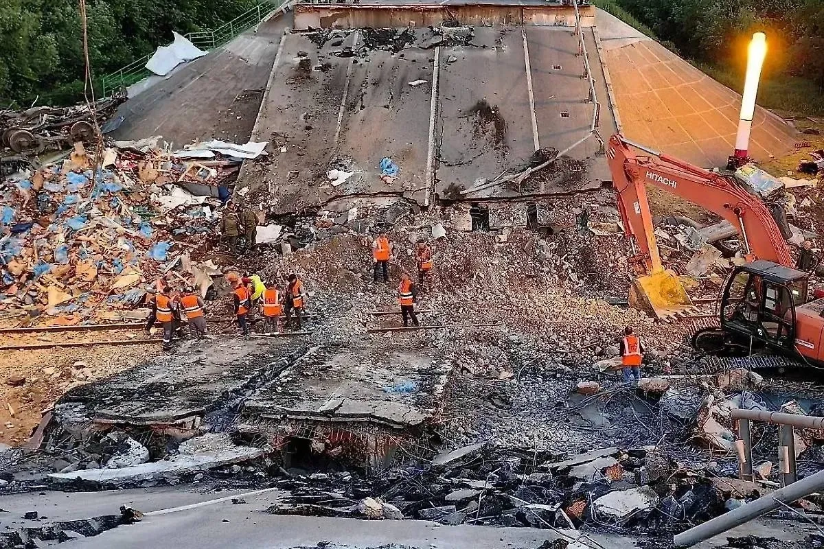 Последствия подрыва моста над железной дорогой в Брянской области. Обложка © МЧС России