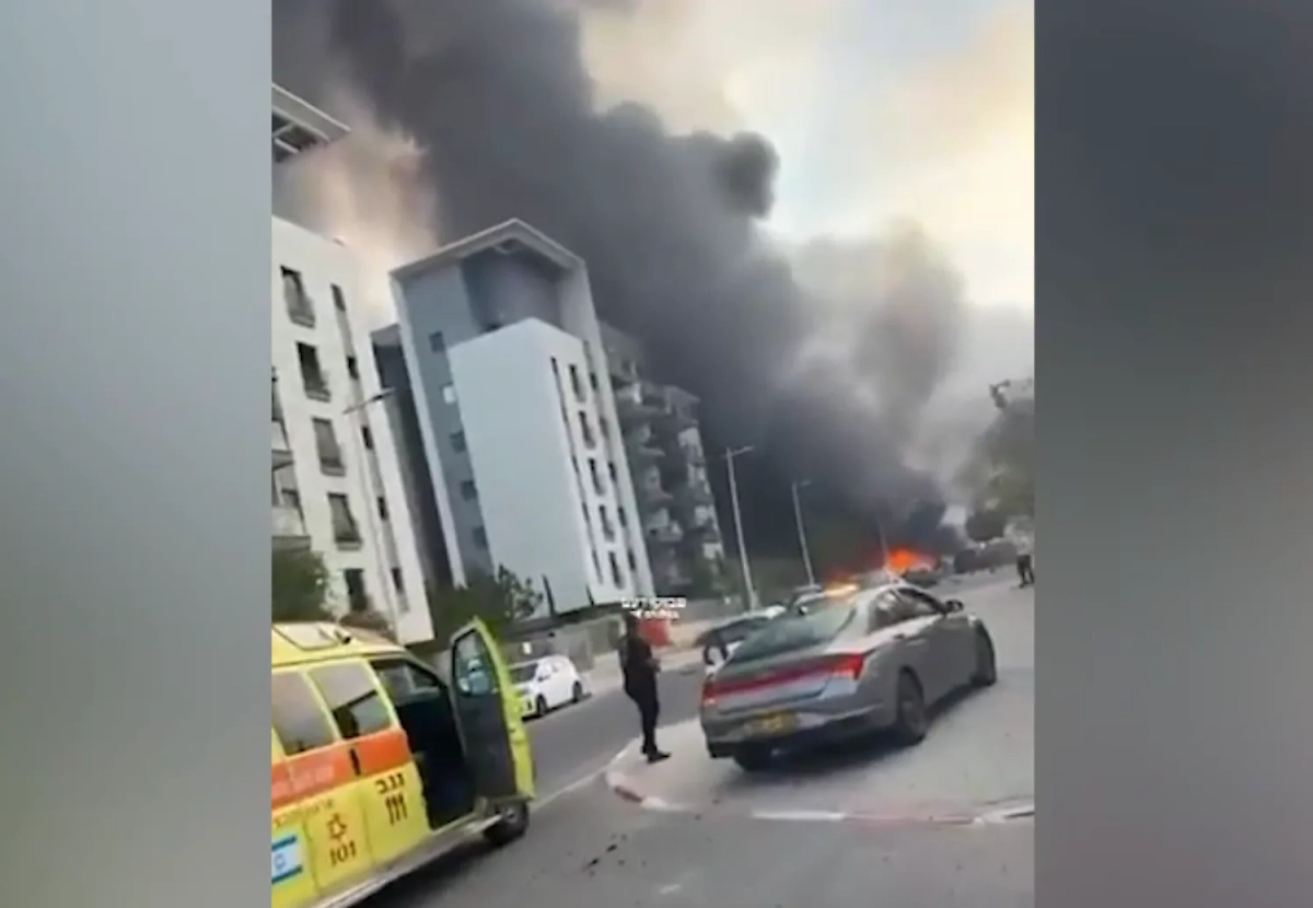 Ведомство распространило кадры, сделанные очевидцами, на которых виден мощный взрыв и столб дыма возле высотного здания. Позже иранская сторона уточнила, что целью атаки стало здание МВД Израиля, что стало ответом на аналогичный удар по Тегерану. Также КСИР утверждает, что после предупреждения была поражена штаб-квартира 14-го телеканала.
