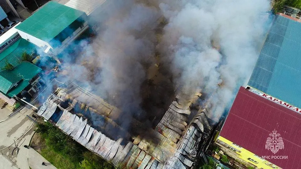 Крупный пожар вспыхнул на овощебазе в Якутии
