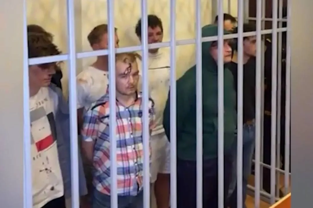 Задержанные россияне в зале суда. Видео © Telegram / Media.Az