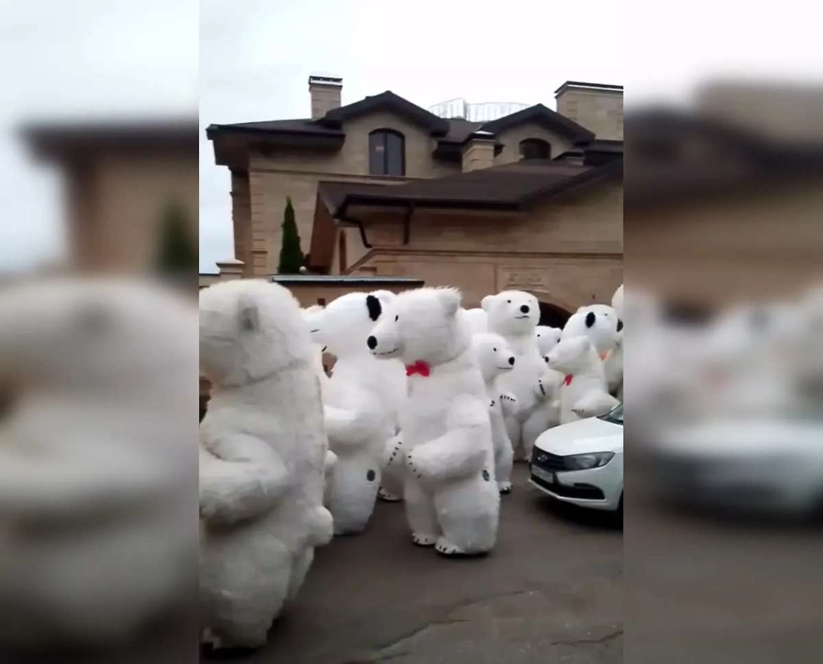 Толпа белых медведей на дне рождения блогера Exile. Видео © Telegram / SHOT