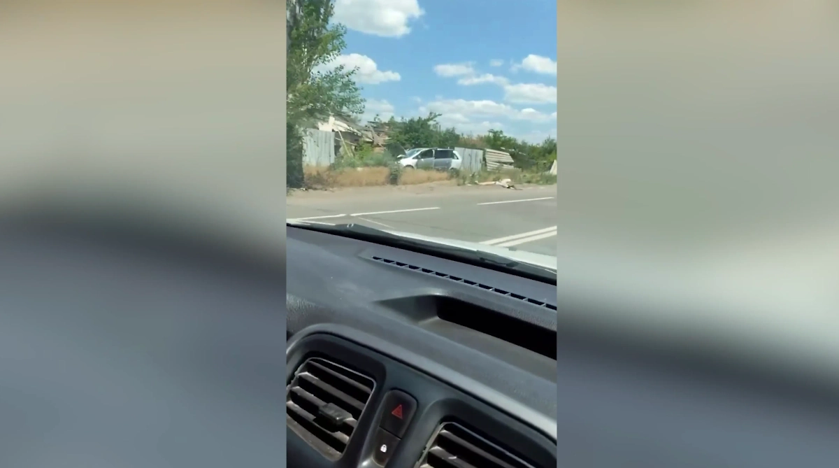 Судя по кадрам, снаряд попал в проезжающую мимо машину. На месте происшествия также находились осколки, характерные для РСЗО HIMARS.
