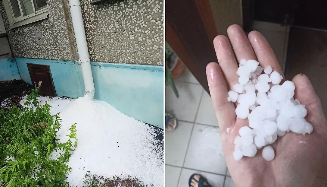 Жители Омской области вынуждены обувать более плотную обувь и запасаться лопатами. Дома засыпает градом, а вода, которая остаётся — невероятно ледяная. При этом сами градинки вовсе не маленькие. По словам местных жителей, они выглядят как вишни и могут даже покалечить.