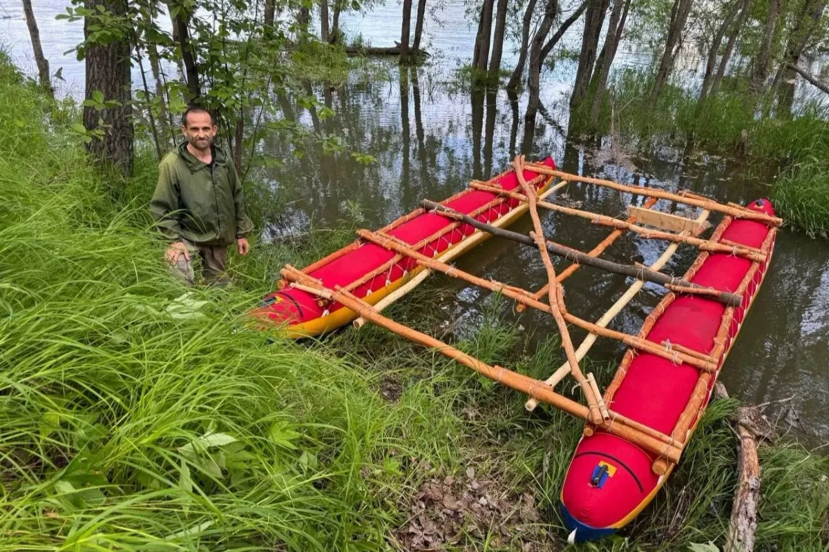 Сергей Лекай и катамаран «Быстрый удод». Обложка © VK / Сергей Лекай