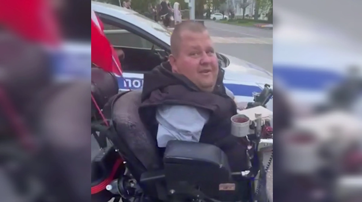 Инвалид, который попал в базу «Миротворца»*. Видео © Telegram / «ПОТОК»