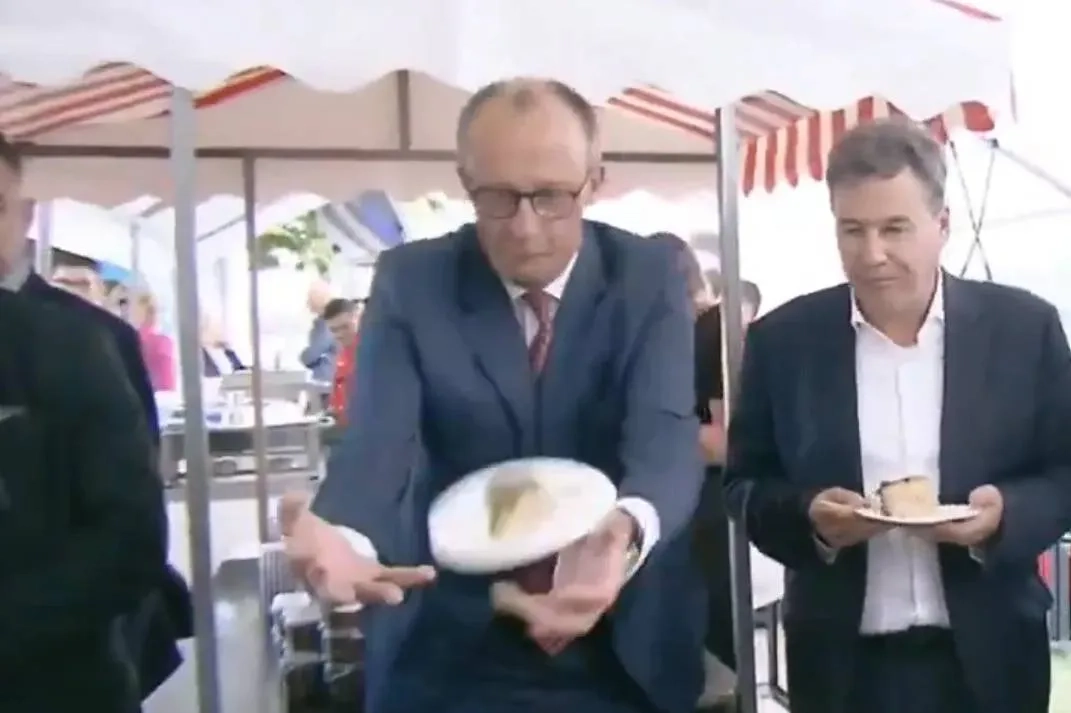 «Роняет страну»: Видео падения торта из рук Мерца стало вирусным